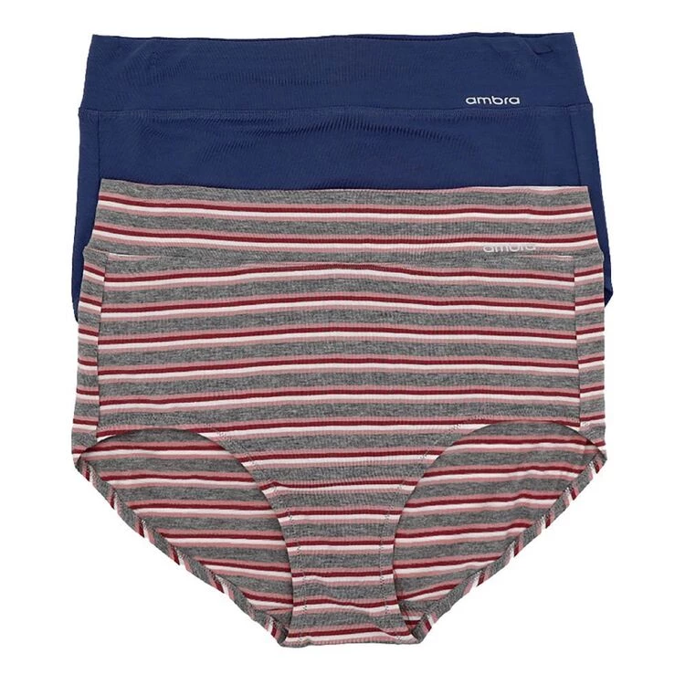 Made from a soft cotton modal blend, the Ambra Smooth Lines Full Brief 2 Pack provides all day comfort. The full brief sits just above the belly button and provides full front and cheek coverage. The wide waistband provides a no pinch, no muffin top fit, perfect for wear under any outfit. Ambra underwear is an Aussie family owned brand, designed for women by women.