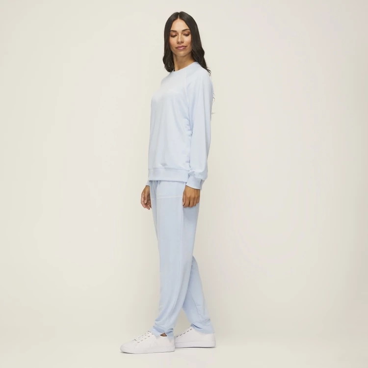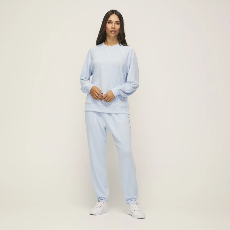 Contrast stitch detail. Branded Logo. Ranglan sleeve. Loose fit. Soft