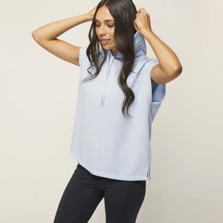 Soft terry fabric. Comfortable loose fit. Oversized hood. Sleeveless
