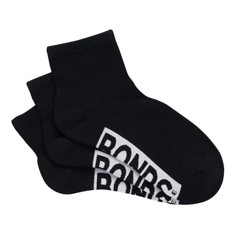 The Bonds Logo Quarter Crew Sock 3 Pack is the perfect everyday sock for running errands or leisurely walks with its quarter crew design and soft cotton rich fabrication. This value pack also features cushioned soles for extra padding and shock absorption during your high-impact workouts. Breathable and comfortable, these socks are a great fit for your feet!
