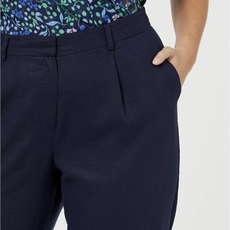 Linen blend fabric. Relaxed fit. Invisible fly. Functional front