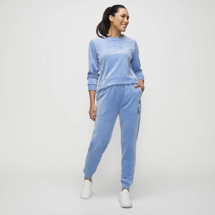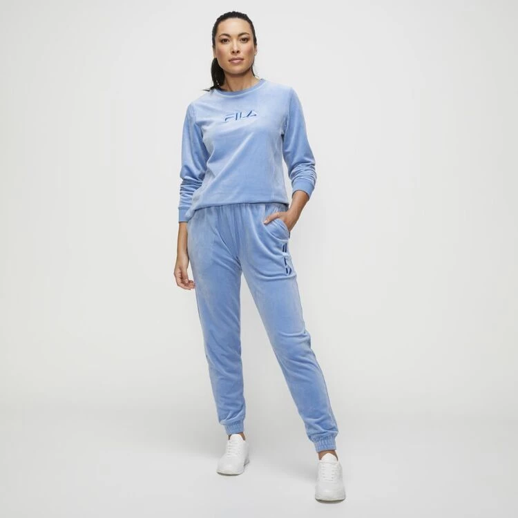 FILA Liv Velour Tapered Leg Track Pant Blue