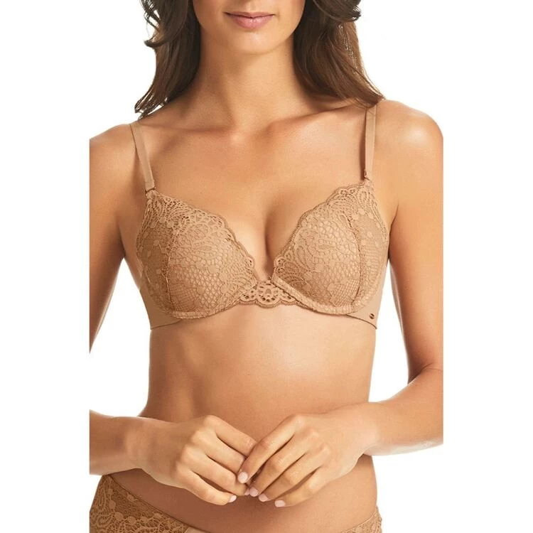 Fine-Lines Lace Push Up Bra Warm Beige