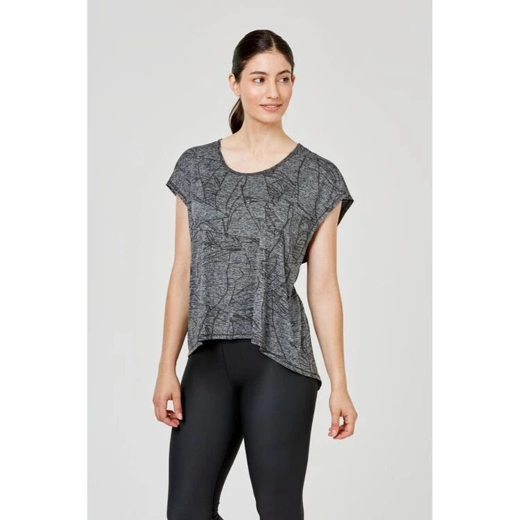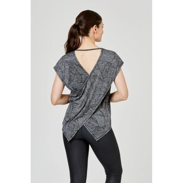 The Giaan Rooney Sangria Tee is a short sleeve cross back tee that can be worn loose or tied up, and is made from jacquard fabric.