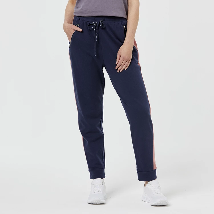 Slight wide leg shape Turn over cuff detail Contrast side stripe