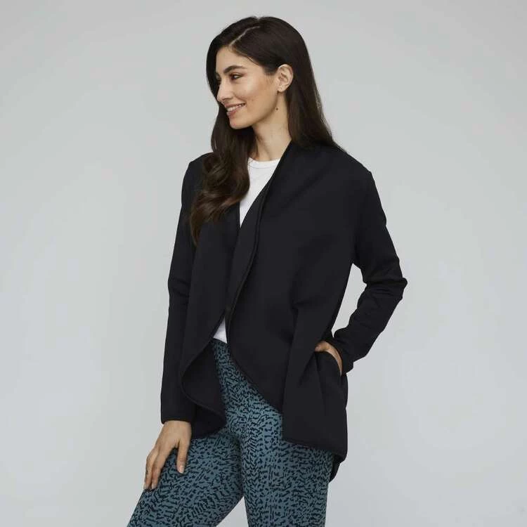 Comfortable and versatile, the GR Giaan Rooney Waterfall Longline Jacket is an easy layering piece, made from a soft scuba fabric. The jacket is designed with a waterfall drape detail that falls softly down the front of the body, features side seam pockets for added convenience, and its neckline and sleeves are finished with bind detail.
