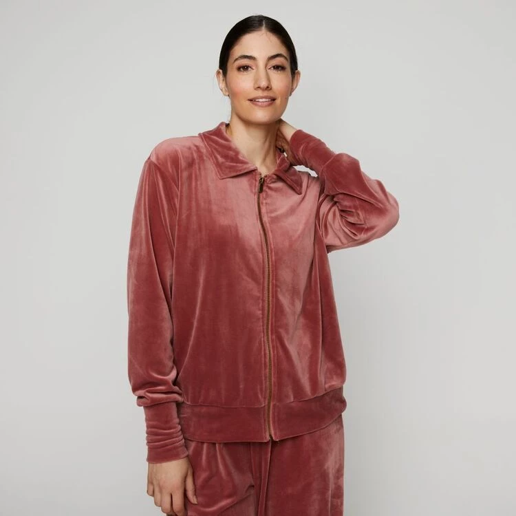 GR Giaan Rooney Zip Through Velour Jacket Dust Pink