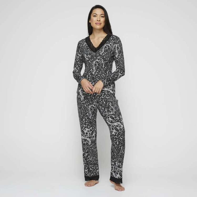 Jane Lamerton Lace Long Sleeve Sleep Top Black White