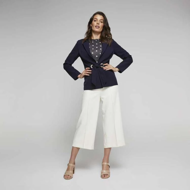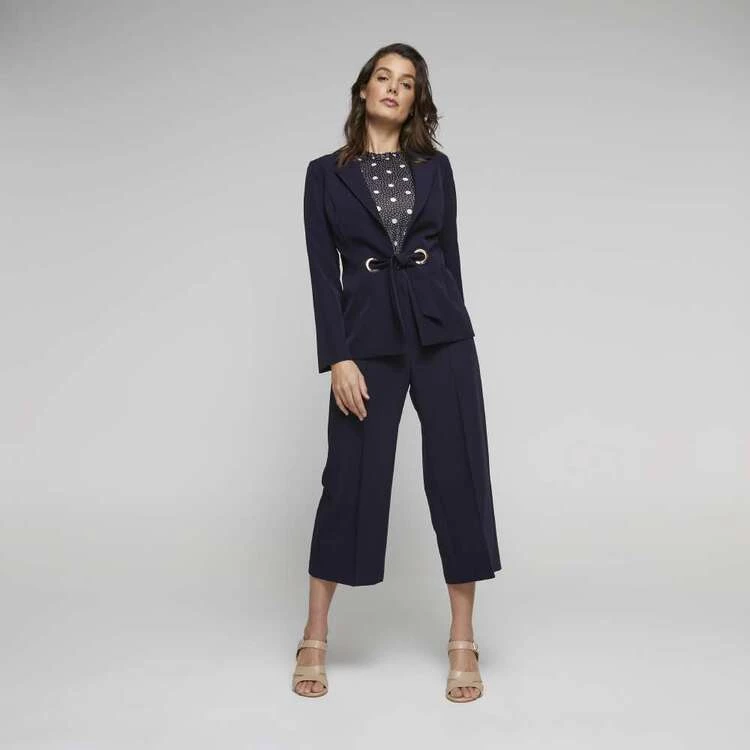 Designed exclusively for Harris Scarfe by Australian Designer Jane Lamerton, the Metal Trim Tie Blazer is a stylish jacket that is the perfect piece to complete your outfit. It also has a classic blazer shape with full length sleeves, collar and revere, which features metal eyelets at the front and self fabric ties to secure the waist.