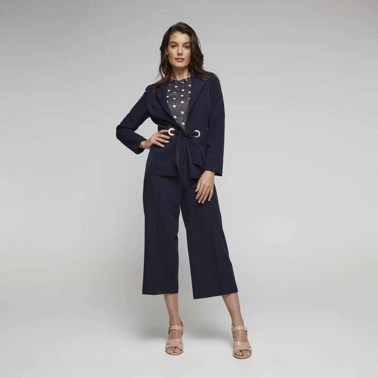 Jane Lamerton Metal Trim Tie Blazer Fr Navy