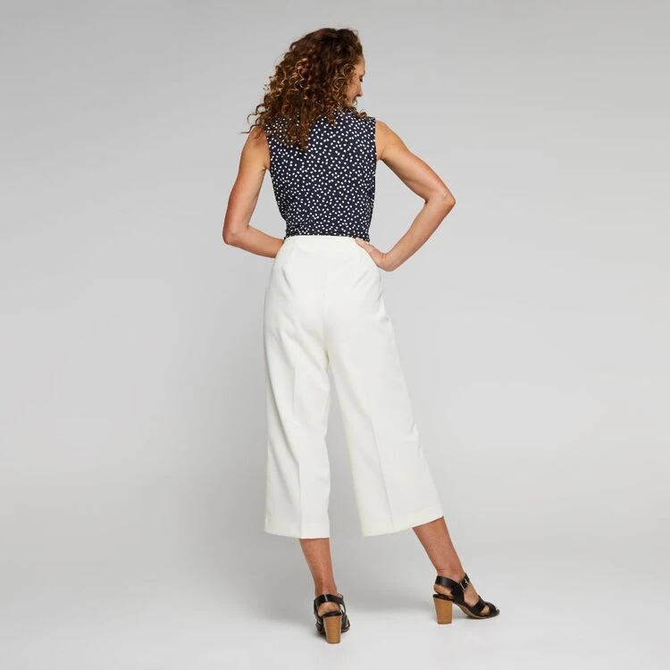 Bring effortless, classic and elegant French style to your warddrobe this season with the Jane Lamerton Pintuck Culotte from the Saint Germain range that has been designed exclusively for Harris Scarfe by Australian Designer Jane Lamerton. This super stylish wide leg pant features a pintuck stitch detail down the front leg, while the top edge of the pant is flat and has a front fly opening. The Pintuck Culotte designed to be paired with the Metal Trim Blazer or with any other piece from the Saint Germain range. Shop the Jane Lamerton collection today at Harris Scarfe!