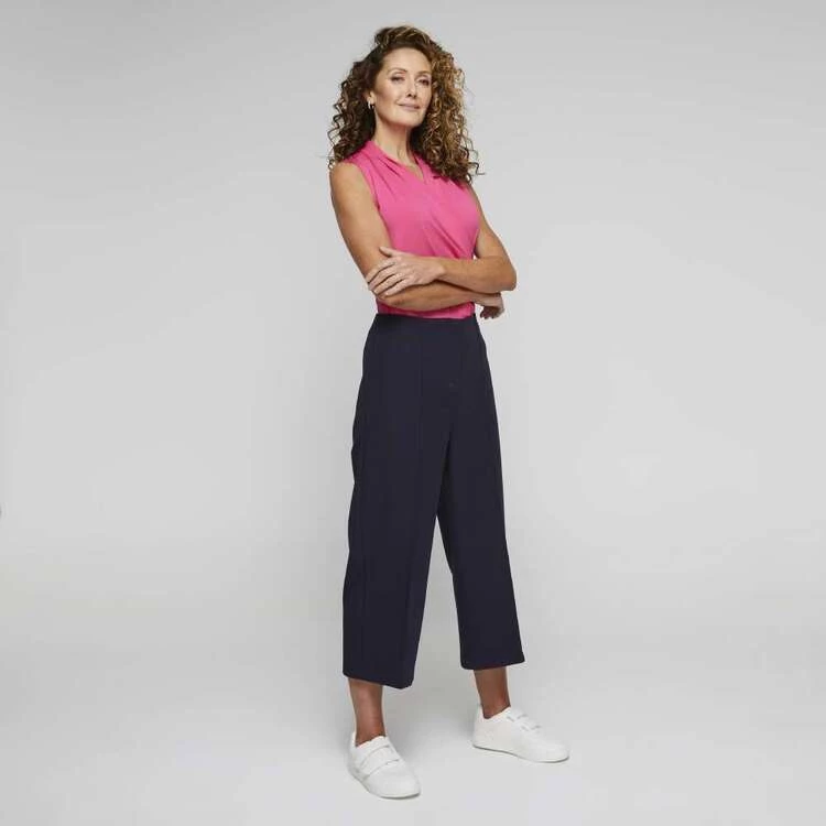 Designed exclusively for Harris Scarfe by Australian Designer Jane Lamerton, the Pintuck Culotte is a super stylish wide leg pant that features a pintuck stitch detail down the front leg. The top edge of the pant is flat and has a front fly opening. Comfortable and versatile, these culottes are designed to be paired with our Metal Trim Blazer.