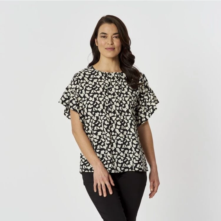 Lamerton. The Tuck top features stunning tuck detail and frill sleeve.