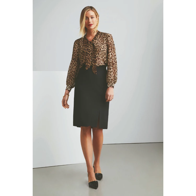 Designed exclusively for Harris Scarfe by Australian Designer Jane Lamerton, the animal print blouse featuring a lovely tuck pussy bow tie neck detail will make you feel elegant and stylish. This gorgeous blouse can be teamed with our JL pants and skirts.