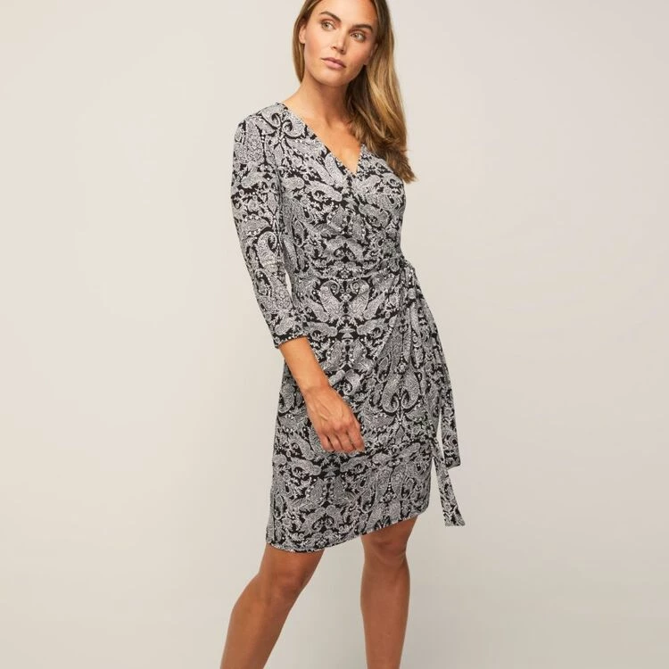 Designed exclusively for Harris Scarfe, the Jane Lamerton Wrap Jersey Dress in a classic paisley print is perfect to take you from desk to dinner with its tie waist that gives your body a flattering silhouette. Stylish and timeless, wear back with a pair of heels for an effortless and sophisticated outfit.