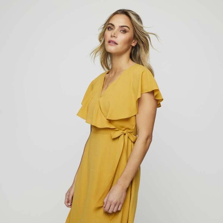 JB Jayson Brunsdon Cape Sleeve Dress Marigold