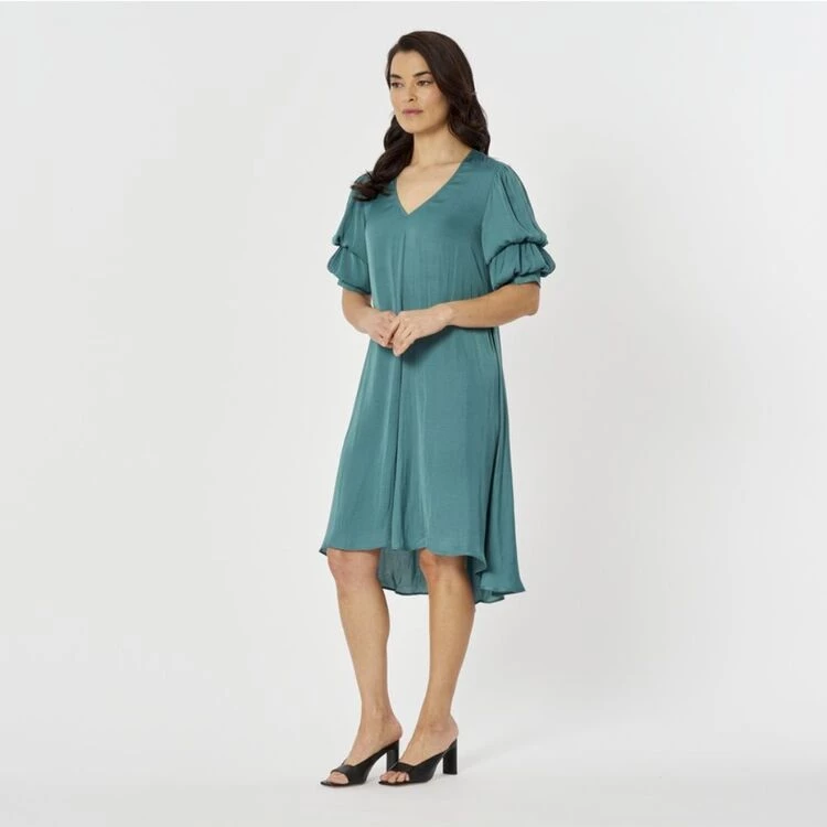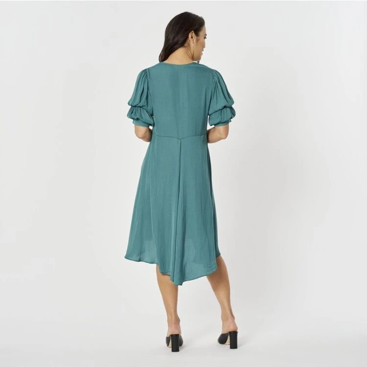 Hi-Lo Hem. V Neckline. Puff Sleeve