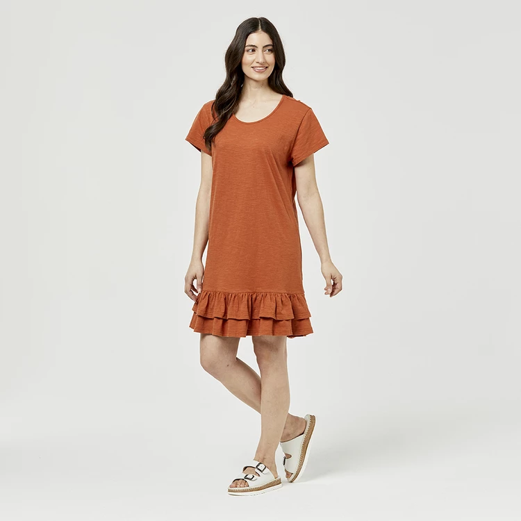 Khoko Collection BCI Cotton Slub Dress With Ruffle Auburn