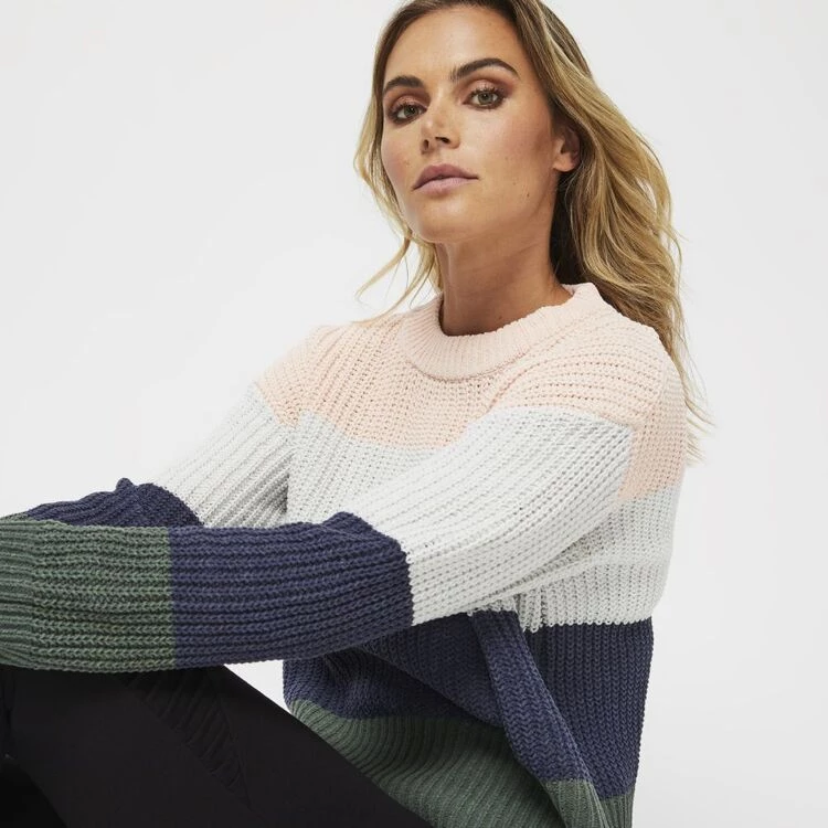 Designed exclusively for Harris Scarfe, this Khoko Collection Colour Block Jumper will add some style and warmth to your winter days with its beautiful colour block design, long sleeves and contemporary fit. This wardrobe essential also has a crew neck design and can be easily worn over a tee, pants and sneakers for that casual, laidback look.