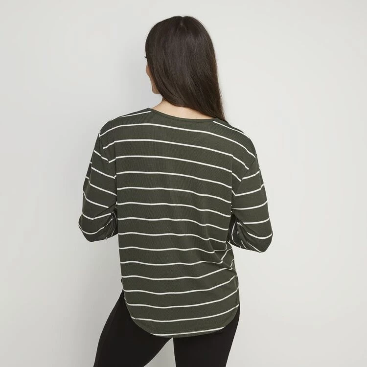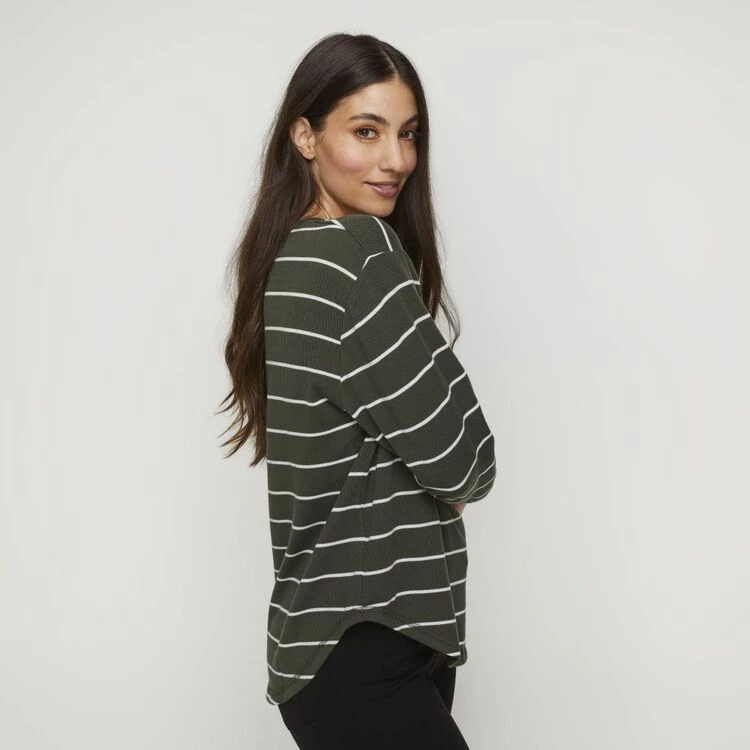 Khoko Collection Drop Shoulder Stripe Top Khaki & Cream