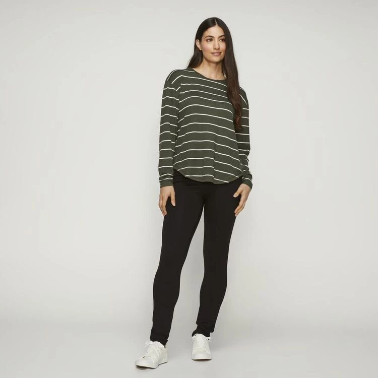 The Khoko Collection Drop Shoulder Stripe Top is a stylish and versatile piece to wear during those cooler days with its long sleeves, round neck design and regular fit. Made from quality polyester fabrication, this wardrobe essential also features stripe detail drop shoulder and can be easily paired back with denim jeans and sneakers for an easy winter look.