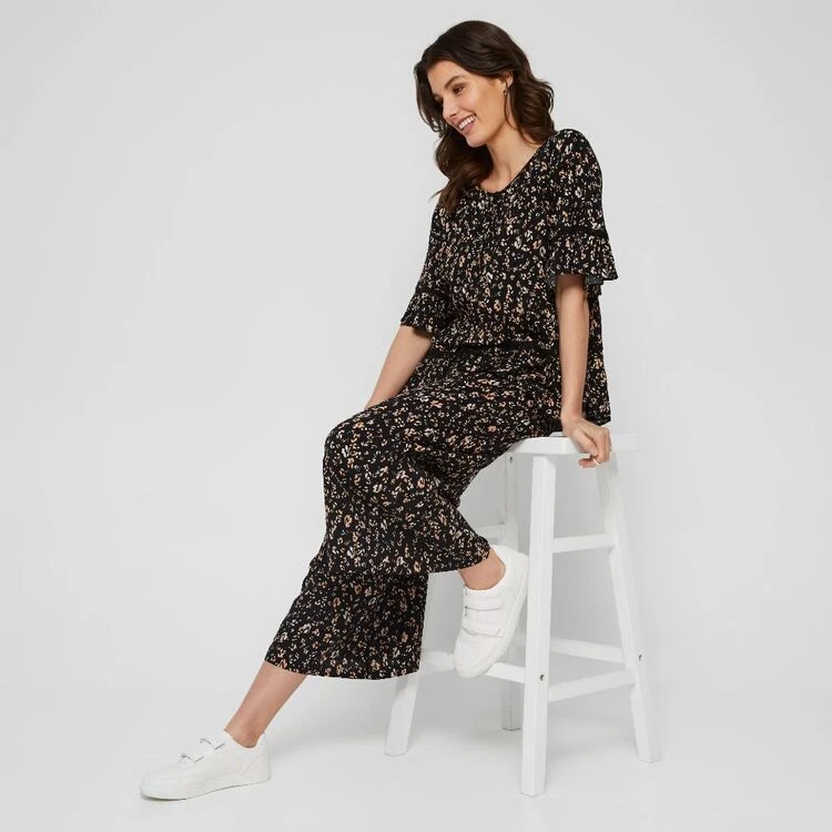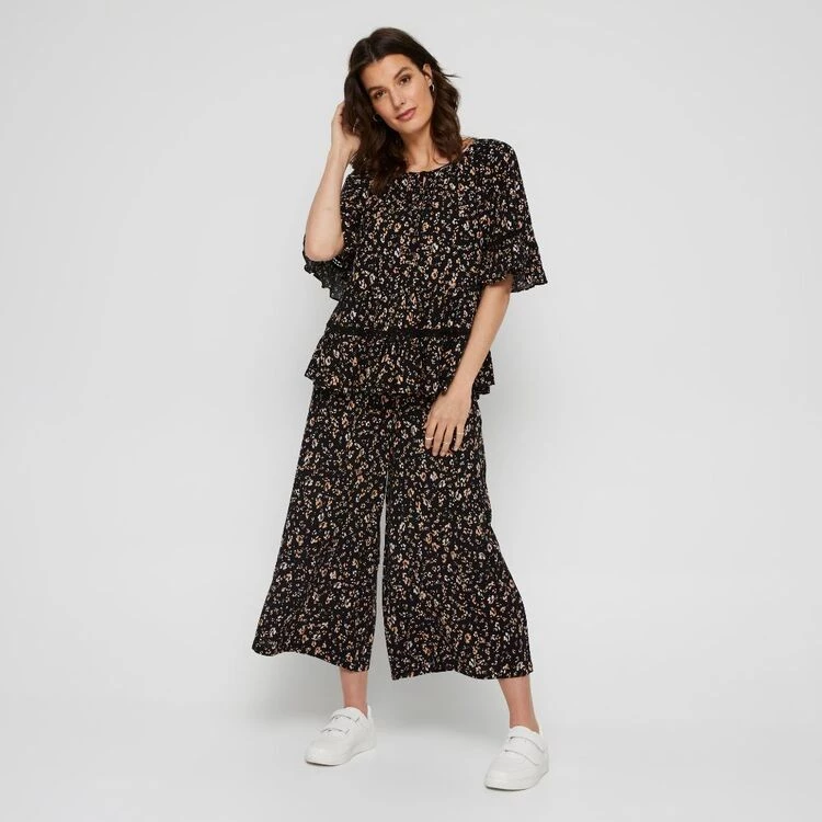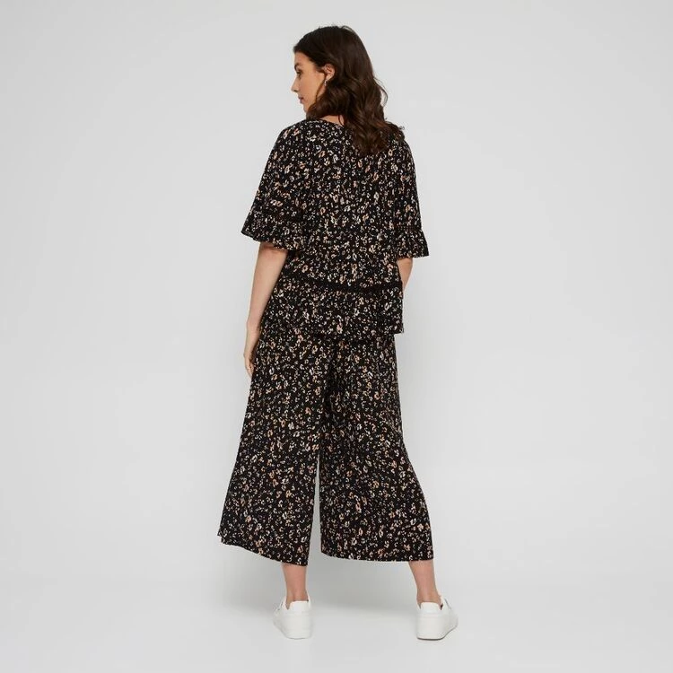 The Khoko Collection Leg Drape Pant is an flowing, pull on pant made in soft crinkle viscose fabric and is part of the Garden Palm range from Khoko Collecton. The back waist has elastic for comfort with a flat front waistband. The leg is nice and full with lots of movement. Pair this with any other piece from the Garden Palm or any other range at Harris Scarfe today!