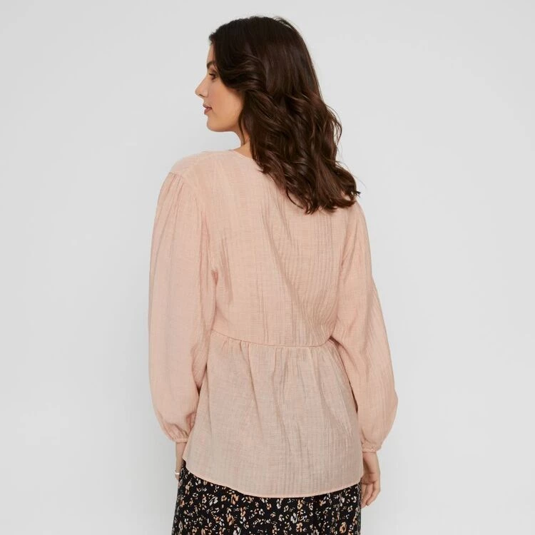 Khoko Collection Textured Peasant Top Mushroom