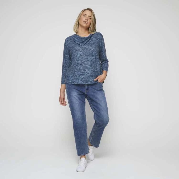 Khoko Plus Cowl Neck Knit Top Denim