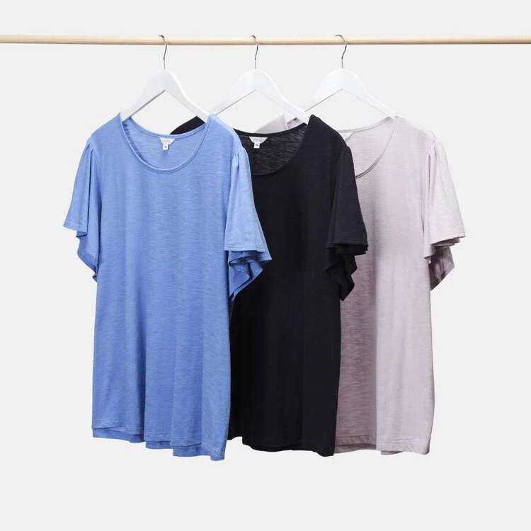 Versatile cotton blend tee featuring flutter sleeve in colours of the