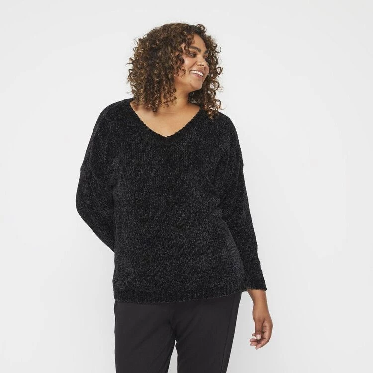 Khoko Plus Vee Neck Chenille Jumper Black