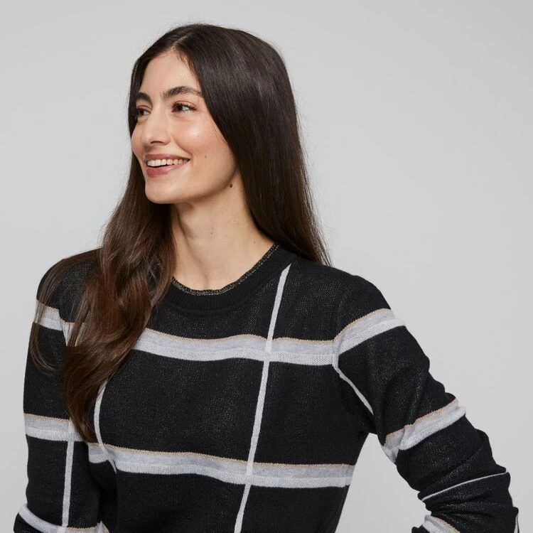 The Khoko Smart Check Funnel Sweater is an irresistibly modern wardrobe essential with its crew neck design, long sleeves and classic fit. Crafted from soft cotton-like polyester fabrication, this knitwear is soft to the touch and is the perfect layering piece for those cooler days. Pair it with jeans and boots for a stylish winter look!