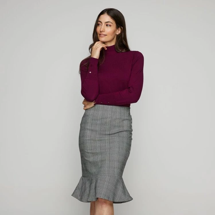The Khoko Smart Check Ponte Skirt is super comfortable and stylish, perfect for any occasion, whether it be for office wear or weekend brunch with friends. Made from our quality ponte fabric, this skirt is pull on with an elastic waist and has a gorgeous check design. Wear back with one of our many great blouses for an easy look.