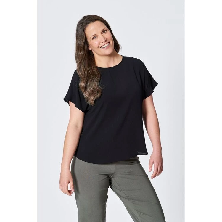 Designed exclusively for Harris Scarfe, this Khoko Smart Dolman Sleeve Shell Top is a versatile, easy fit top that can be effortlessly paired with jeans or pants for casual, everyday wear. It has short sleeves and a textured polyester fabric, ideal for wear on warmer days. This top is truly a wardrobe staple for those looking for both comfort and style!