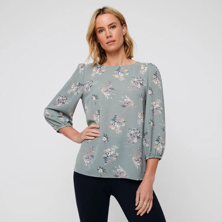 The easy wear Khoko Smart Puff Sleeve Shell Top is made in a lovely bubble textured fabric, available in a gorgeous mini bouquet print. The neckline is rounded with a flattering 3/4 sleeve finished in elastic, so you can style it your own way. Pair with your favourite jeans or skirt for an adorable spring picnic outfit!