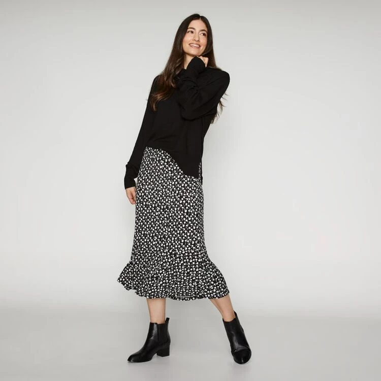 The easy-to-wear Khoko Smart Pull On Flounce Skirt is fully elasticated in the waist for comfort and is made with soft jersey fabric that drapes beautifully. Available in our mini daisy print, a nice amount of fullness in this skirt skims your calf and can be worn with a dressy shoe or white sneakers for a more casual look.