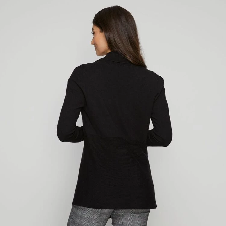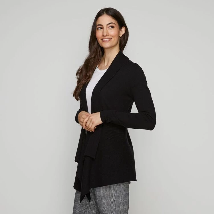 A universal piece, the Khoko Smart Rib Waterfall Cardigan features a modern asymmetric hemline, waterfall front design and long sleeves to keep you both warm and stylish during those cooler days. Made from a cosy viscose fabrication, this cardi also has a classic fit that pairs well with a jeans, pants or dresses.