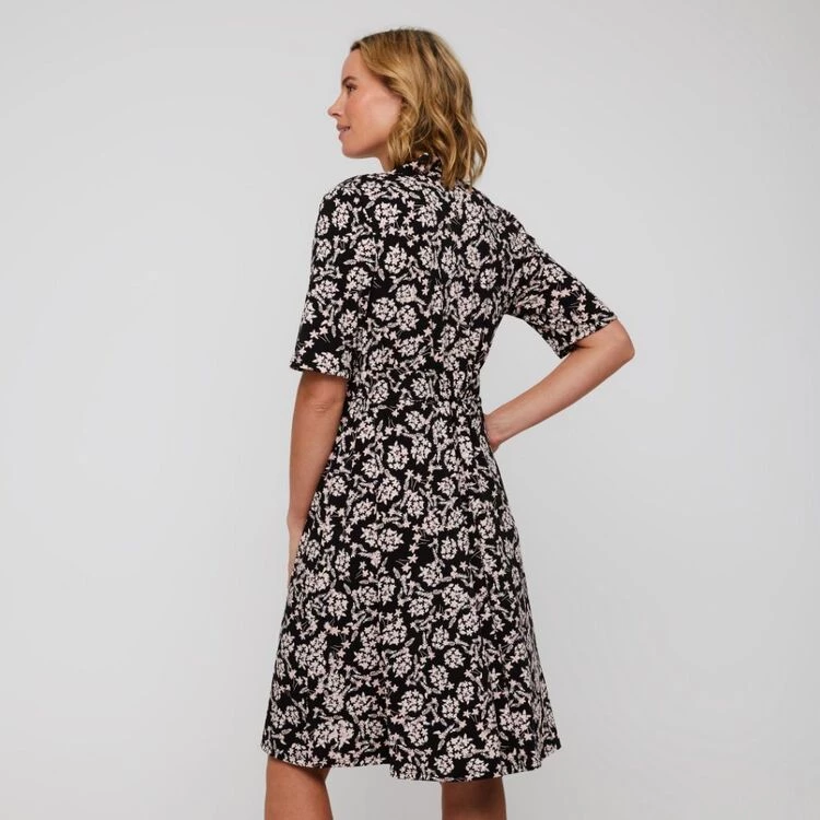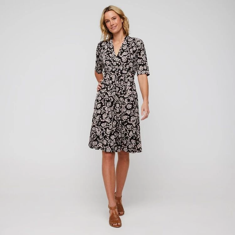 Elevate your day dressing and enjoy the new season whereever you are with this Khoko Smart V Neck Fit & Flare Jersey Dress from the Khoko Smart Blooming Field collection. The waist of this stunning V Neck Fit & Flare Jersey Dress features a shaped band, highlighted with contrast piping. The neckline is a v neck and features short flutter sleeves. The Skirt skims the calf. Shop this and the Blooming Field collection from Khoko Smart at Harris Scarfe today!