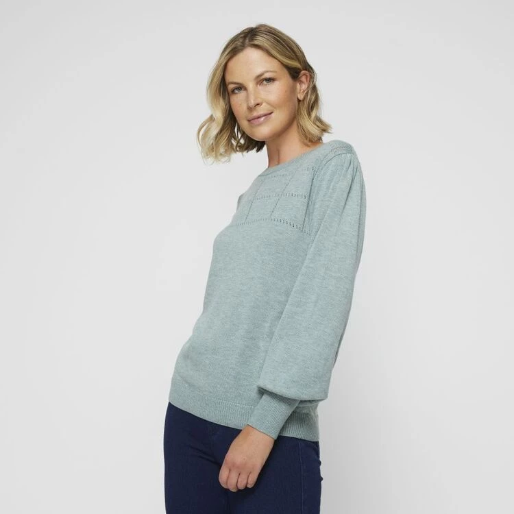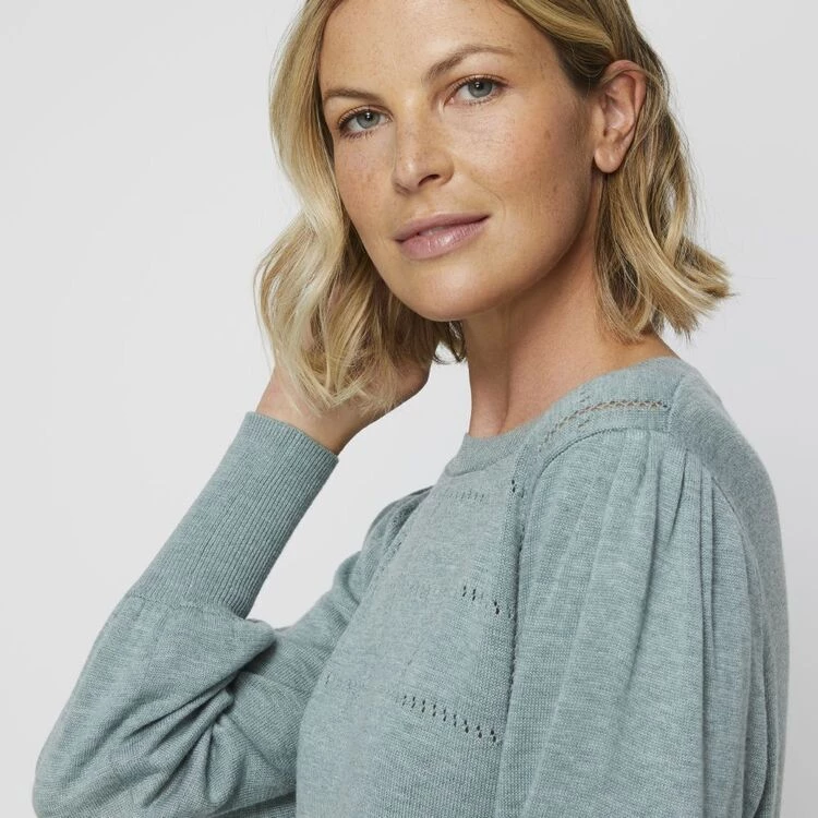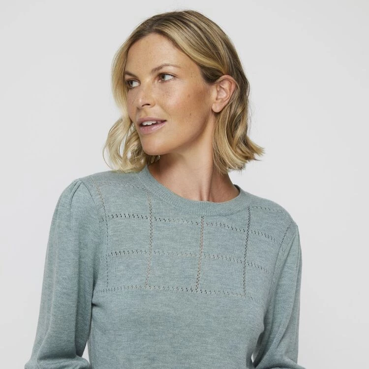 Stay cosy with the Leona Edmiston Check Stitch Knit, designed exclusively for Harris Scarfe by Leona Edmiston. This jumper adds a feminine sensibility to your wardrobe, being knitted with a check stitch pointelle detail and featuring a rounded ribbed neck, high rib cuff and a puff long sleeve. This statement piece is ideal for smart casual occasions where you want to keep cosy without compromising on style.
