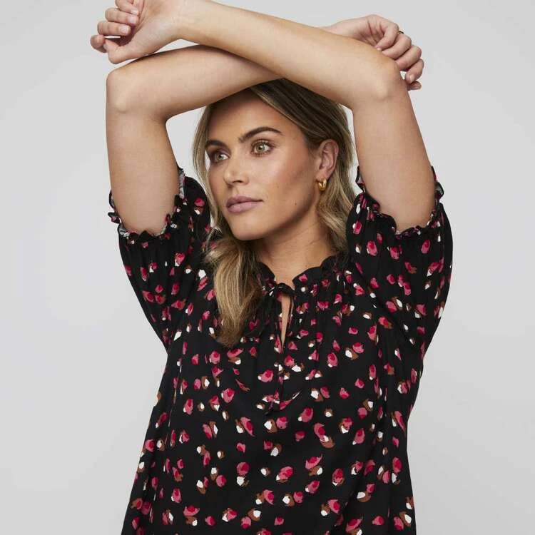 Designed exclusively for Harris Scarfe by Leona Edmiston, the Ruffle Hem Tunic Dress is an easy wear dress made in viscose that drapes softly. The dress’ style features a 3/4 sleeve, notch neckline with self fabric tie and a tiered full skirt. Available in our beautiful paint spot print, easily pair this stylish number with white sneakers for a chic and casual look!