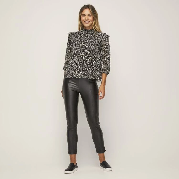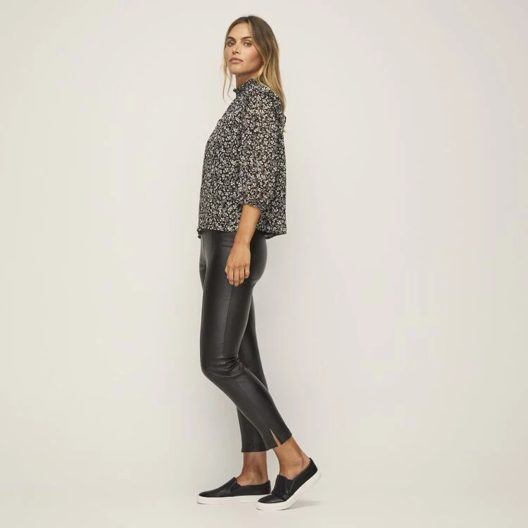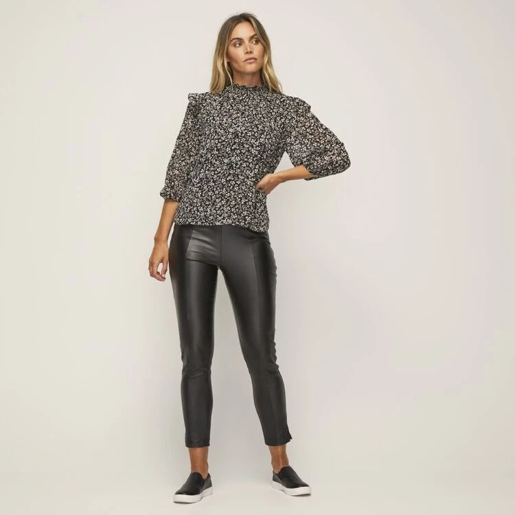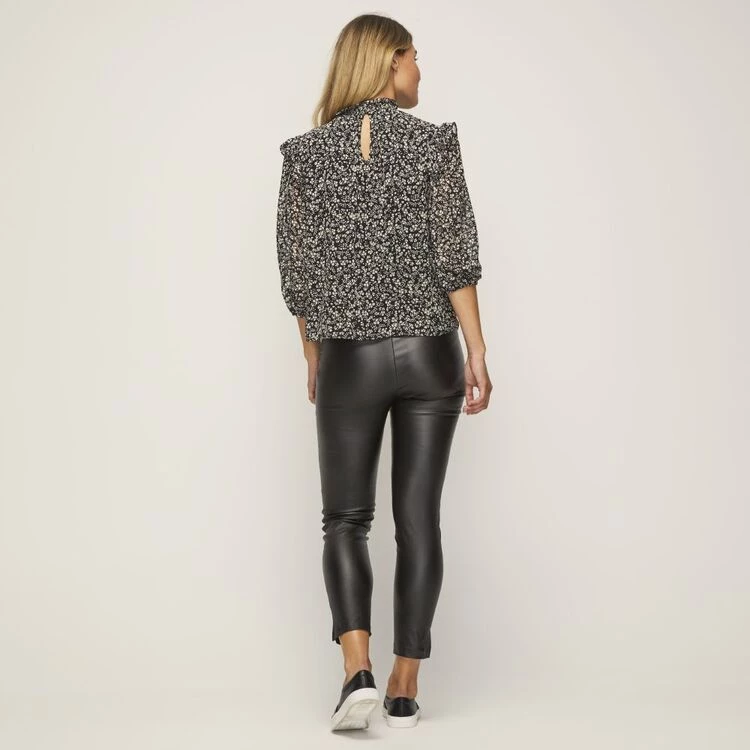 Shirred collar detail. Long sleeve. Woven.