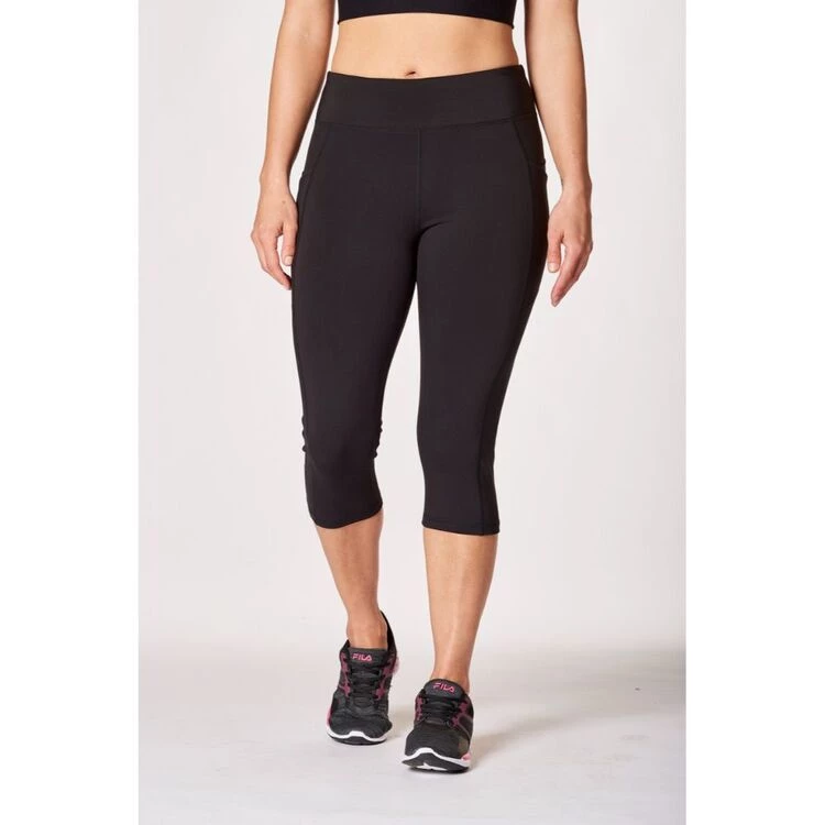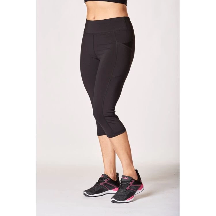 This crop legging is perfect for any exercise with its comfortable high waist with functional side pockets, insert mesh detail on pockets, and made in our squat proof polyester.