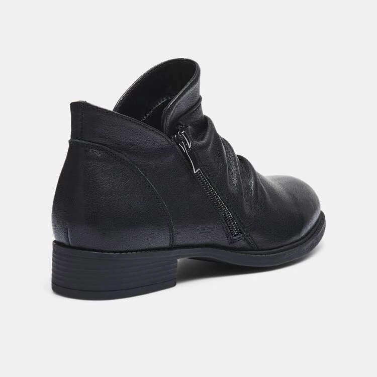 The Natural Comfort Adelle Ruched Ankle Boot will be your new favourite pair for the cooler days with its soft leather upper and low heel for added style and height. These boots also feature a moulded padded leather sock to provide additional comfort and support for your feet when you are walking. Match this with a flowy dress and tights for an easy winter look!