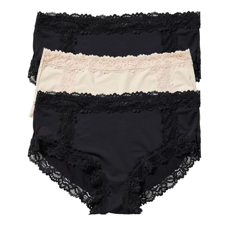 Sash & Rose 3 Pack Micro Lace Full Brief Black & Beige