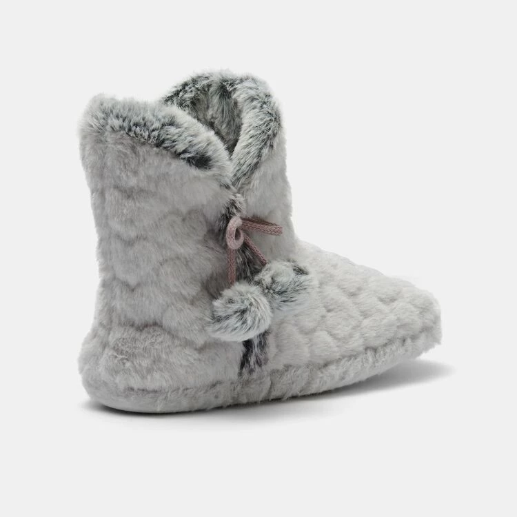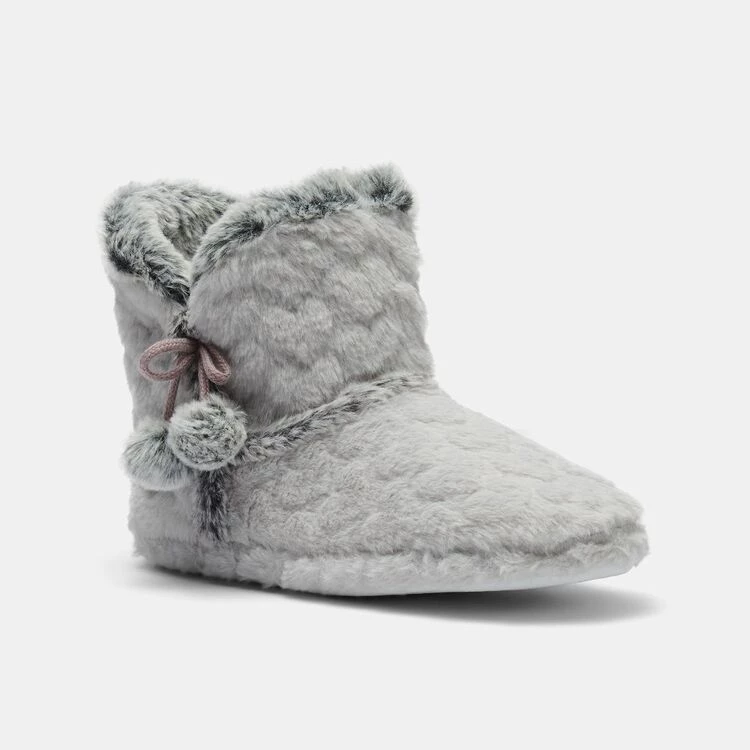 Treat your feet this season whether home or out and about with the warmth and comfort of the Sash & Rose Birdie Heart Slipper Boot. Featuring a love heart pattern and pom-poms to the side, your feet will stay cozy with its patterned soft plush upper, padded sock with memory for extra comfort, and long lasting outsole. Make your feet fabulous and warm today.