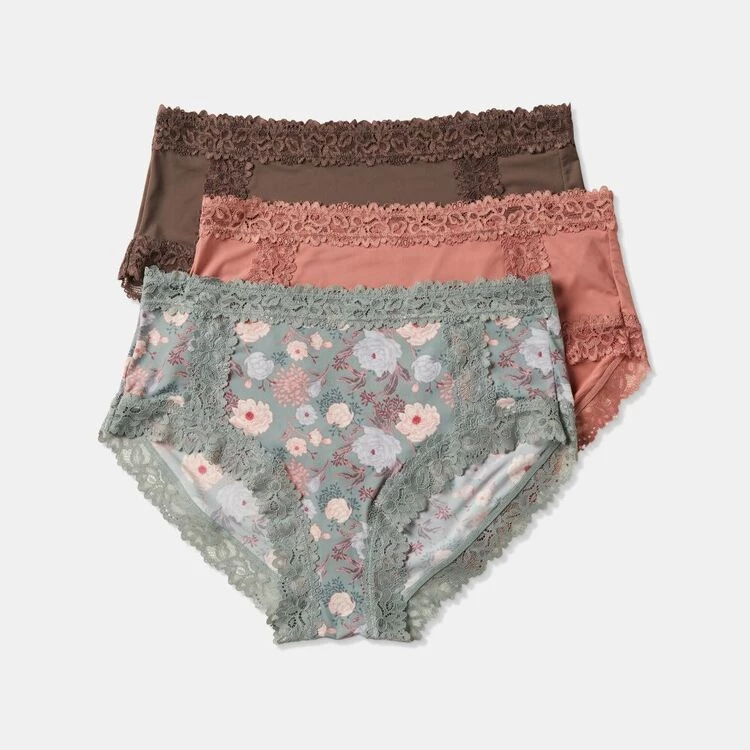 Sash & Rose Micro Lace Full Brief 3 Pack Mocha