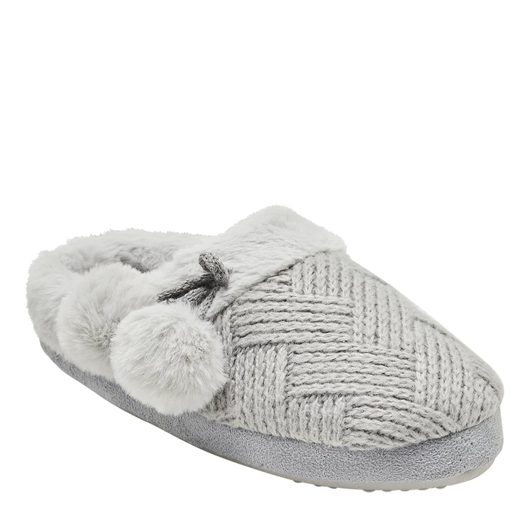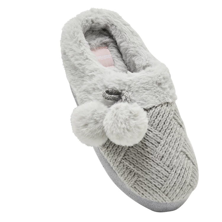 Sash & Rose Women’s Cable Knit Pom Pom Scuff Gift Box Grey