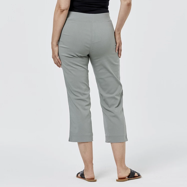 Mid waist bengaline pant in capri length. A great tran-seasonal piece.