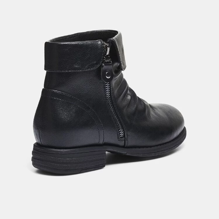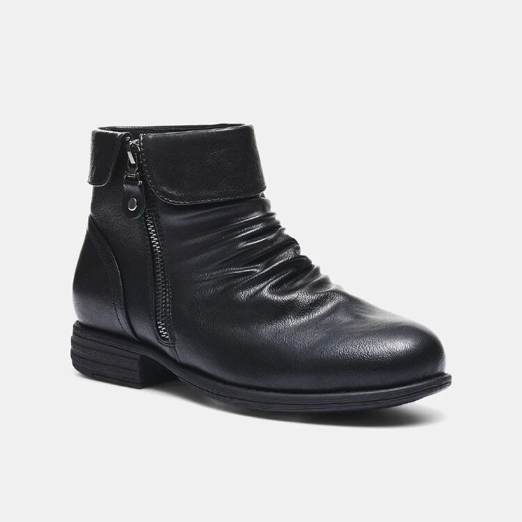 Perfect for cooler days, the Savannah Carlson Ruched Ankle Boot with Side Zip will be your new winter shoe essential with its rouched upper design and side zip closure for that added style and easy accessibility. Made from durable synthetic materials, these boots also have a moulded footbed to support your feet and ensure that they stay in place. Pair it with a flowy dress and tights for a evening date look!