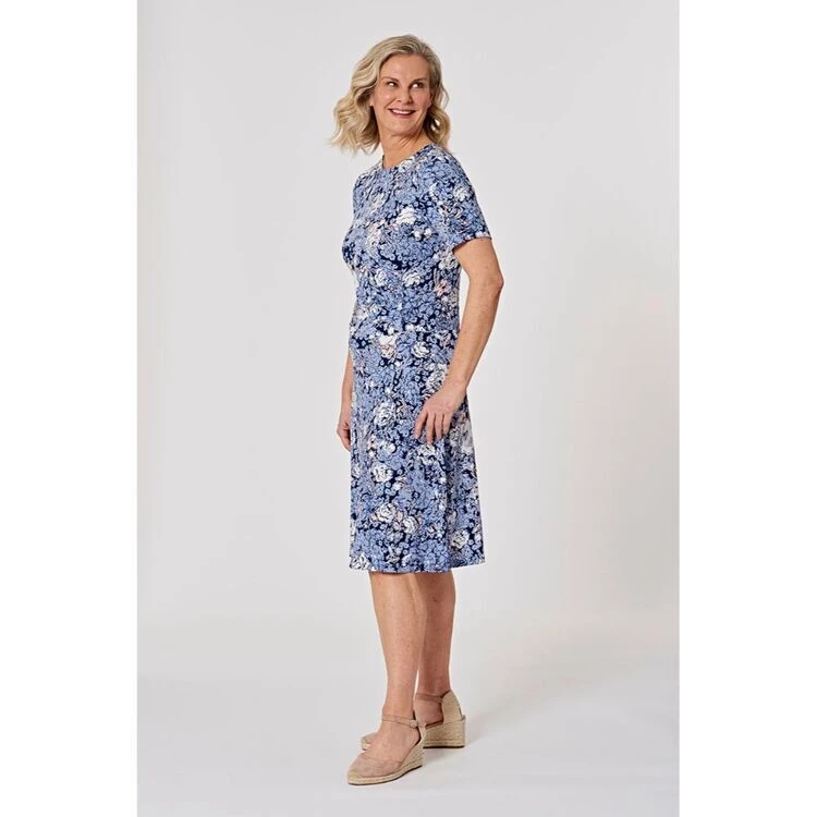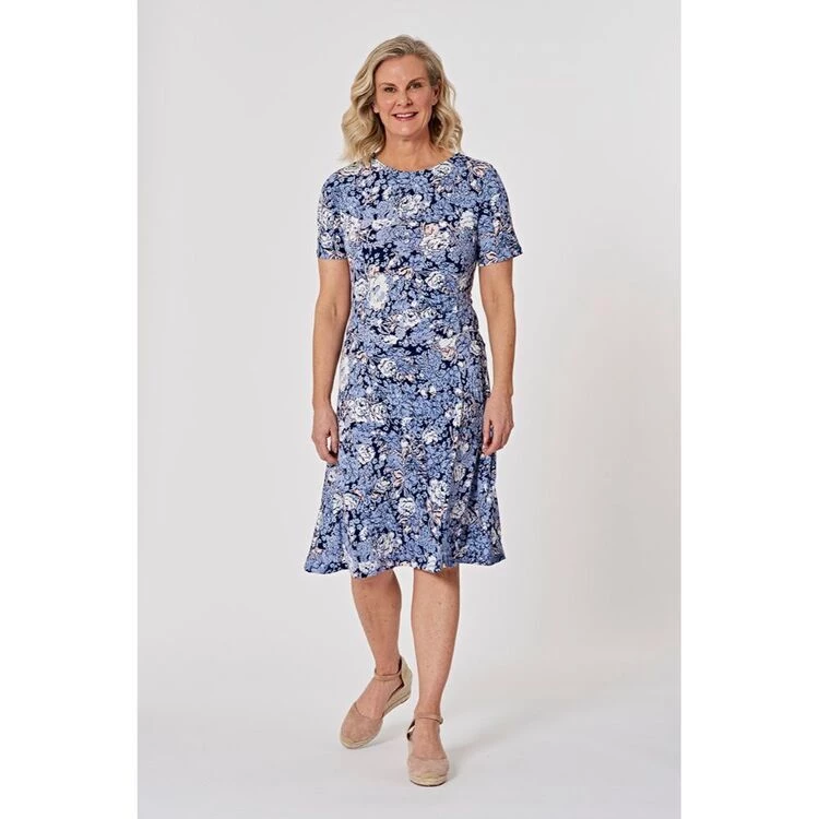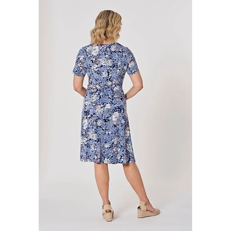 in dusty blues and pinks. Team this dress with an ankle boot or ballet