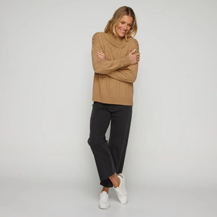 Be the first to review “Savannah Split Neck Jumper With Cable Camel” Cancel reply